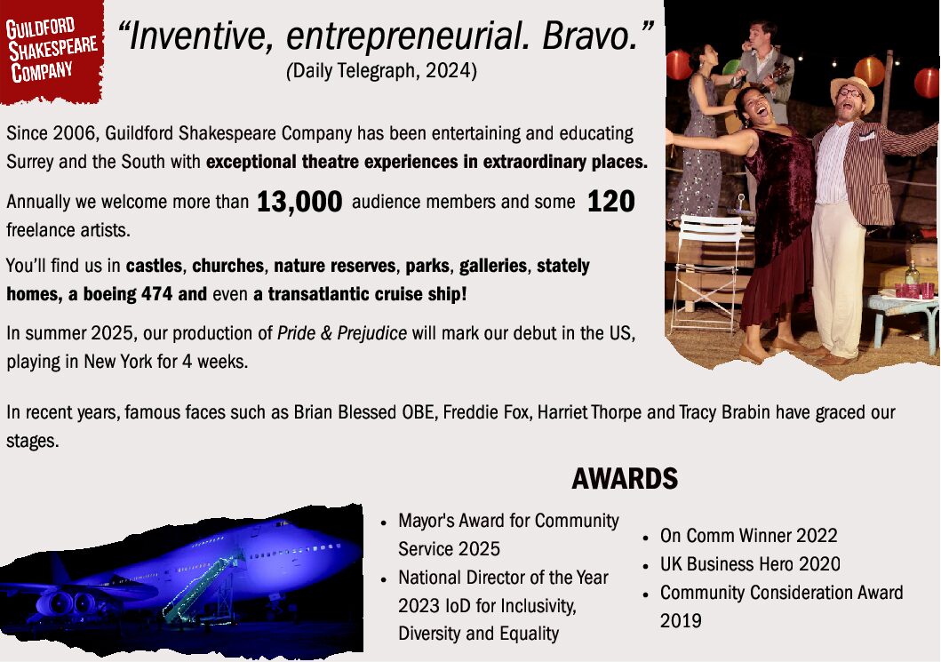 A relationship with one of Surrey's best-loved arts organisations guarantees: